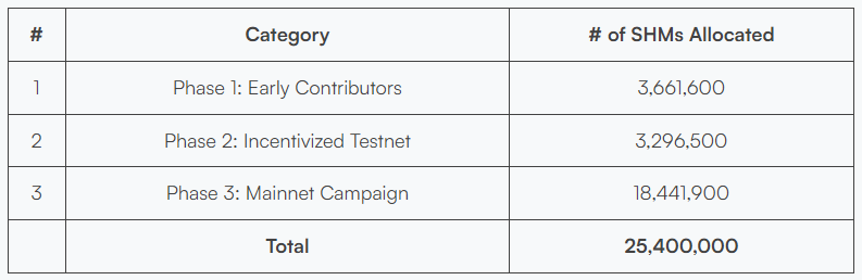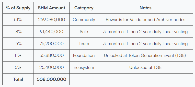 SHM এর সর্বোচ্চ সরবরাহ থাকবে ৫০৮ মিলিয়ন। এখানে SHM টোকেন বরাদ্দের ভাঙ্গন।